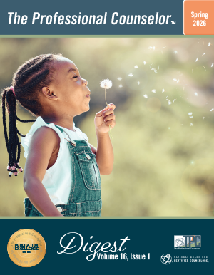 A digest is a nontechnical summary of each article published in The Professional Counselor, paired with art or photography. You can view the current issue of the Digest in PDF format.